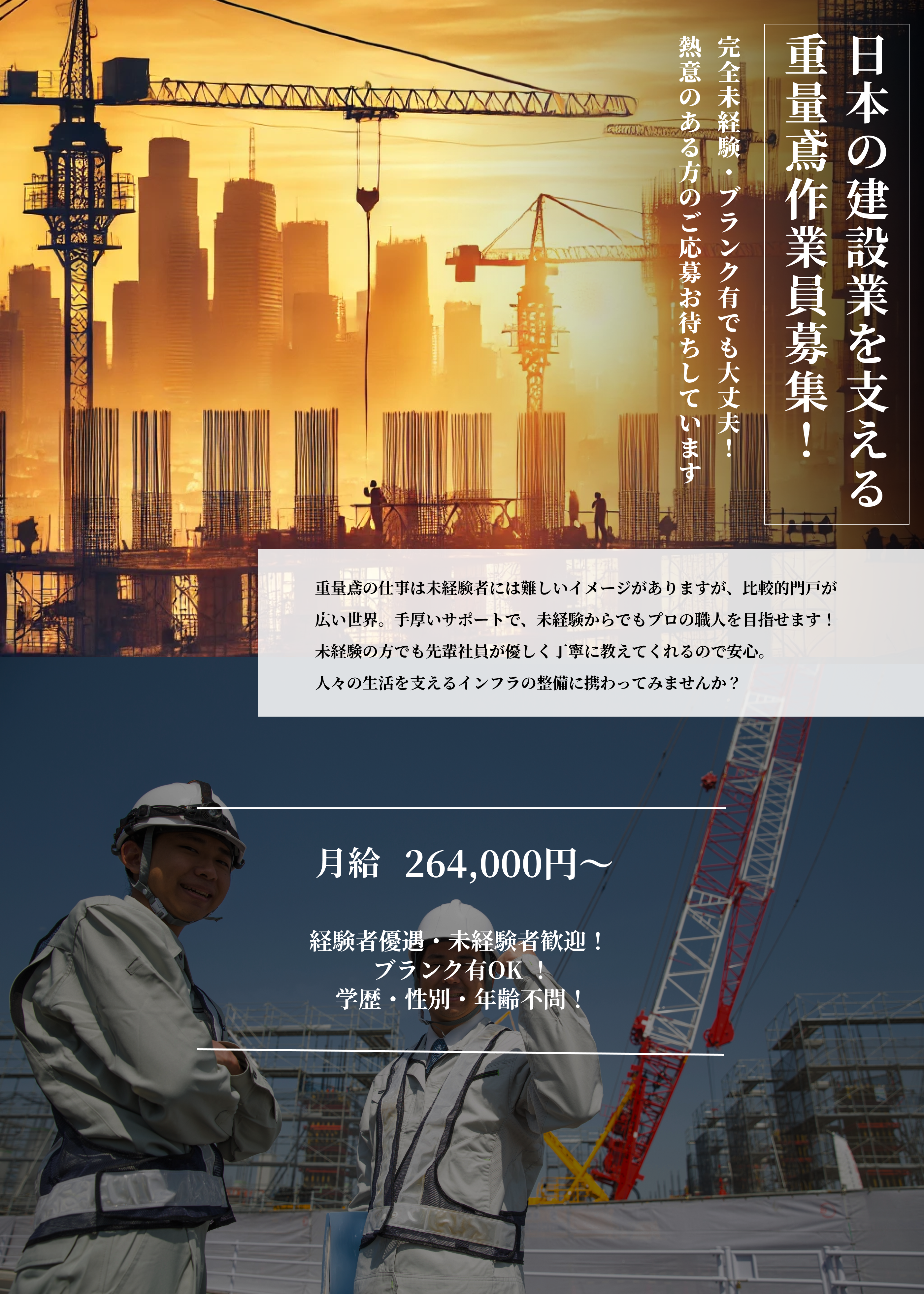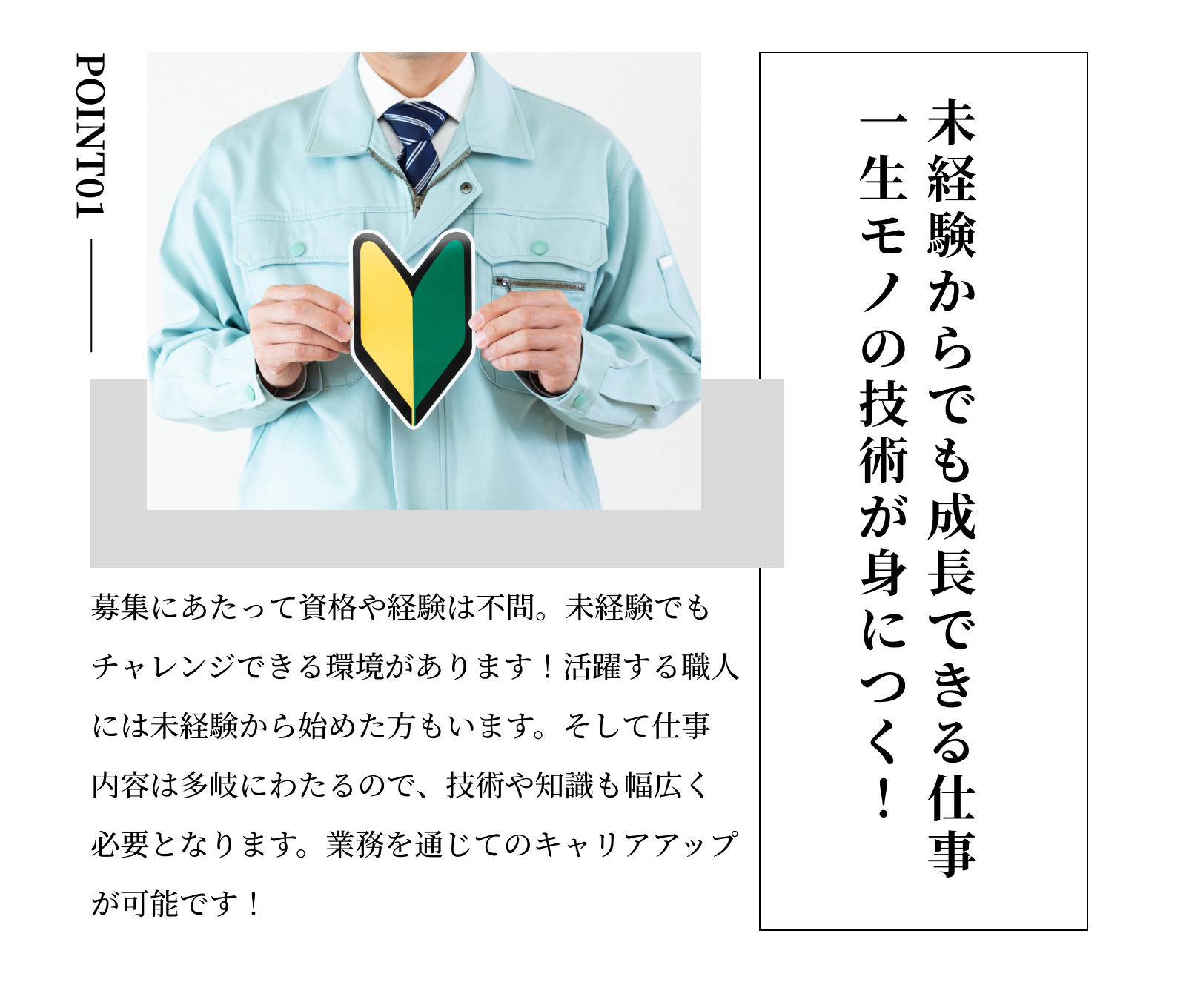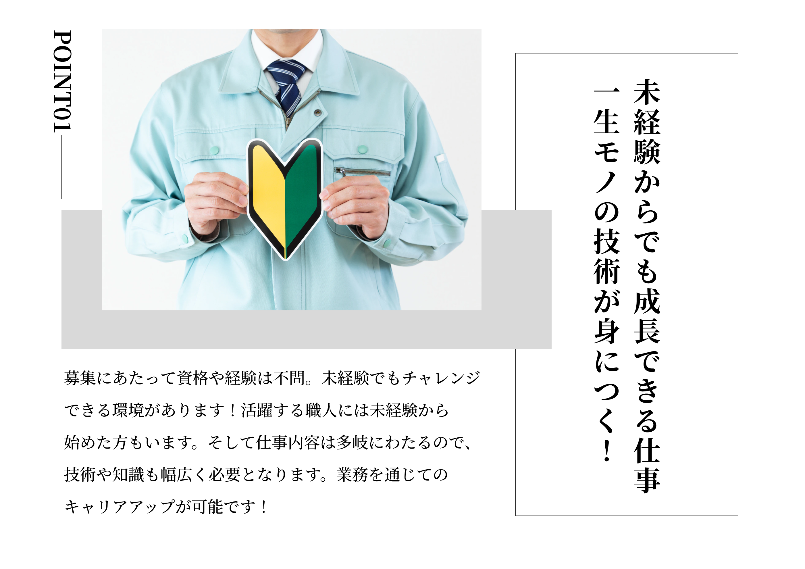 経験者優遇・未経験者歓迎 普通自動車運転免許(AT限定可) 玉掛けの免許あれば尚可 ブランク有OK 学歴・性別・年齢不問 |